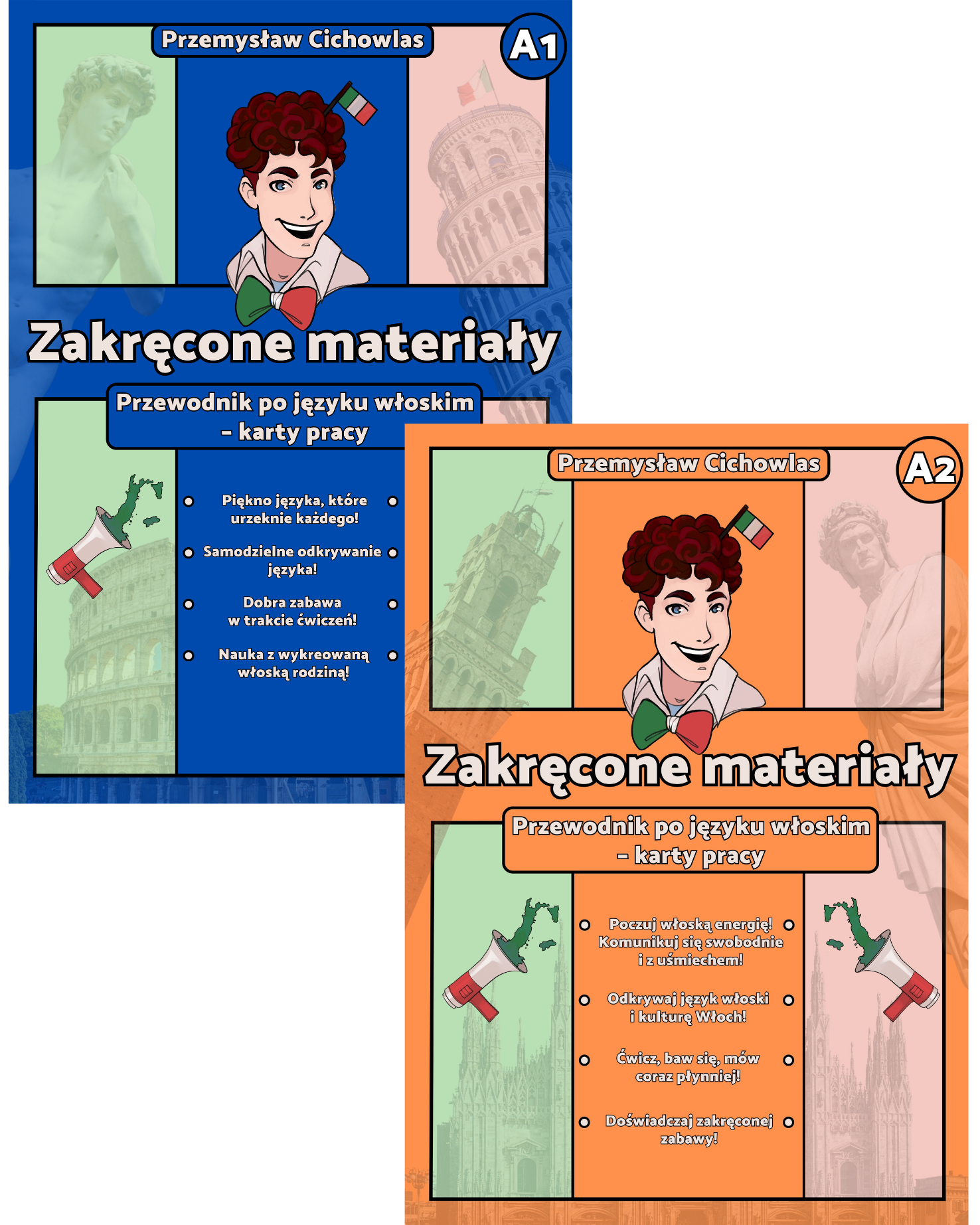 – Tworzyłem je jako nauczyciel, który doskonale pamięta jak studentem był. W sposób zabawny i przejrzysty przedstawiam wszystkie aspekty języka włoskiego, te łatwe oraz te trudne, a przynajmniej te, które trudne Wam się wydawały, bo jeszcze nie widzieliście moich opracowań 😉